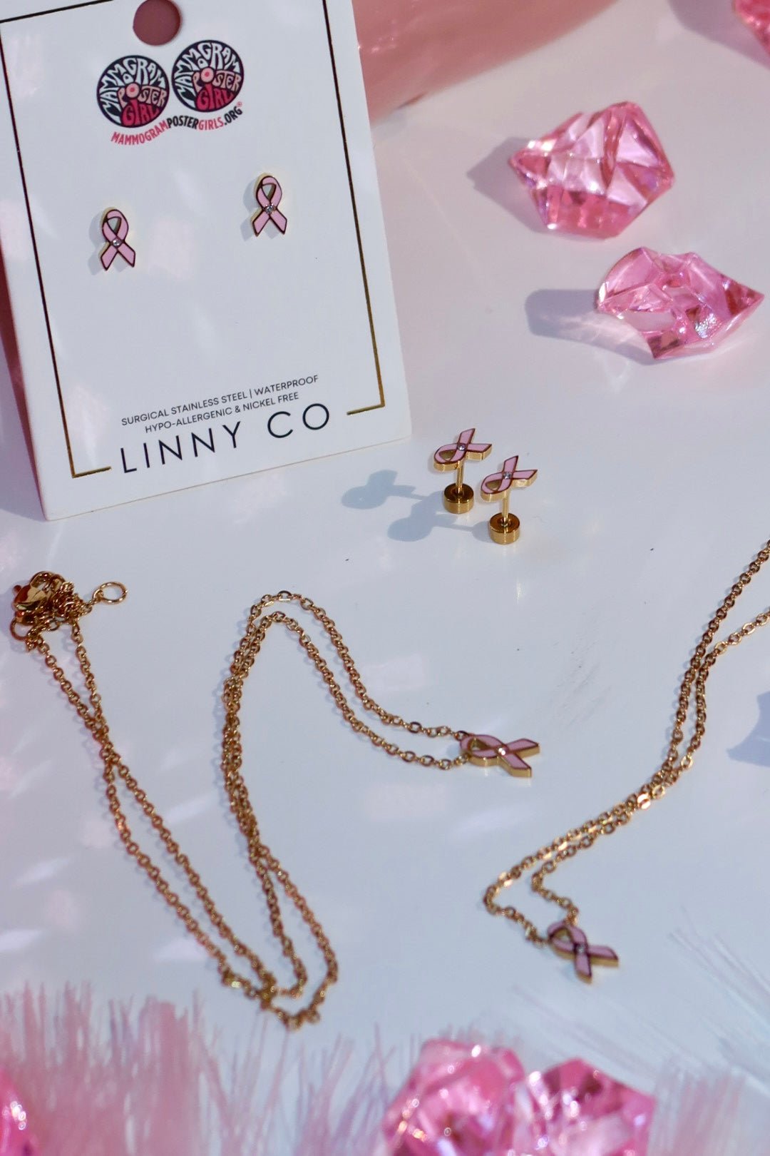 Screwback Stud Earrings - Breast Cancer Ribbon