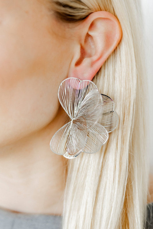Amanda Flower Statement Earrings - Silver