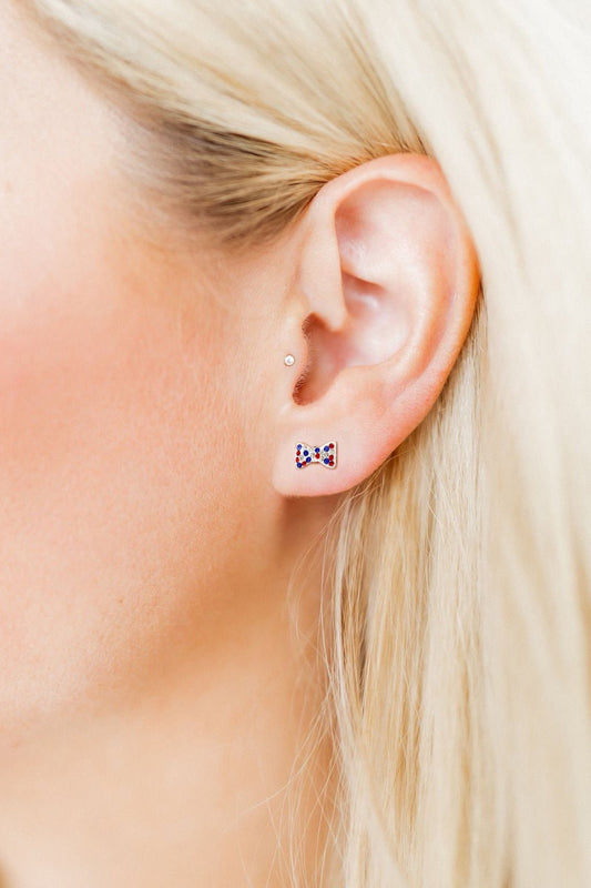 Screwback Stud Earrings - Frances Bow Red, White & Blue