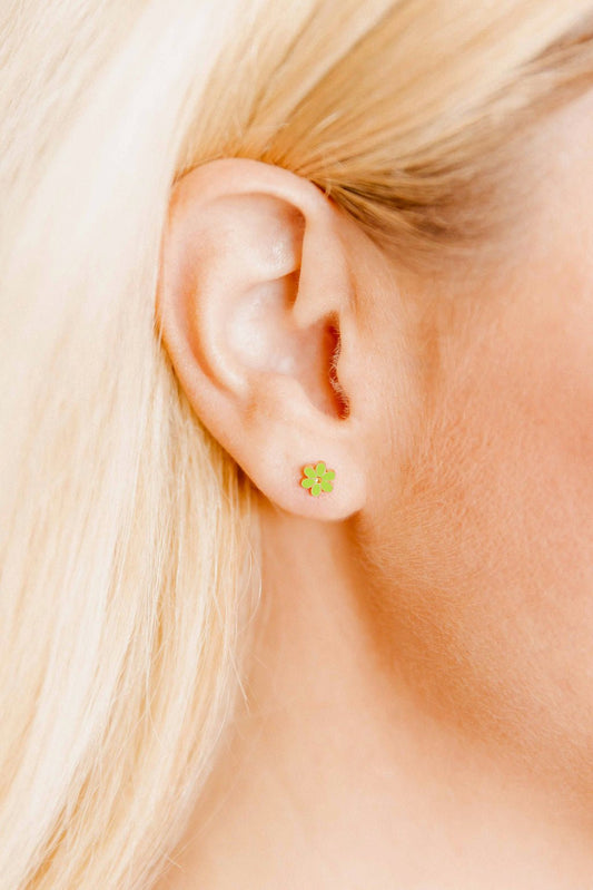 Screwback Stud Earrings - Alli Neon Green