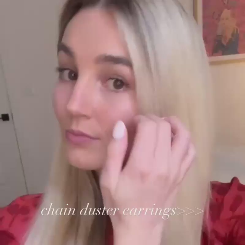 Effortless movement meets everyday shine with the Devin Duster Earrings. Designed with a sleek flat-back stud and delicate gold chain drop, these lightweight dusters add just the right amount of length and shimmer. The subtle texture of the chain catches the light beautifully, making them perfect for stacking, styling solo, or elevating even the simplest look.