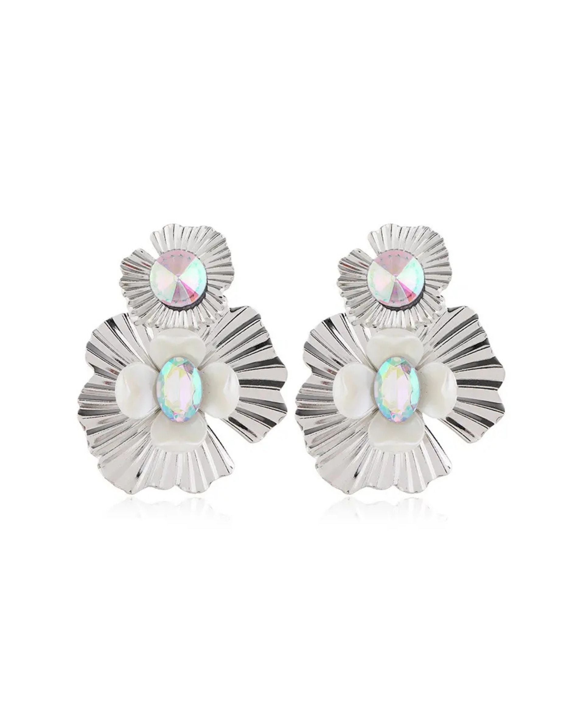 Zara Iridescent Statement Earrings - Silver